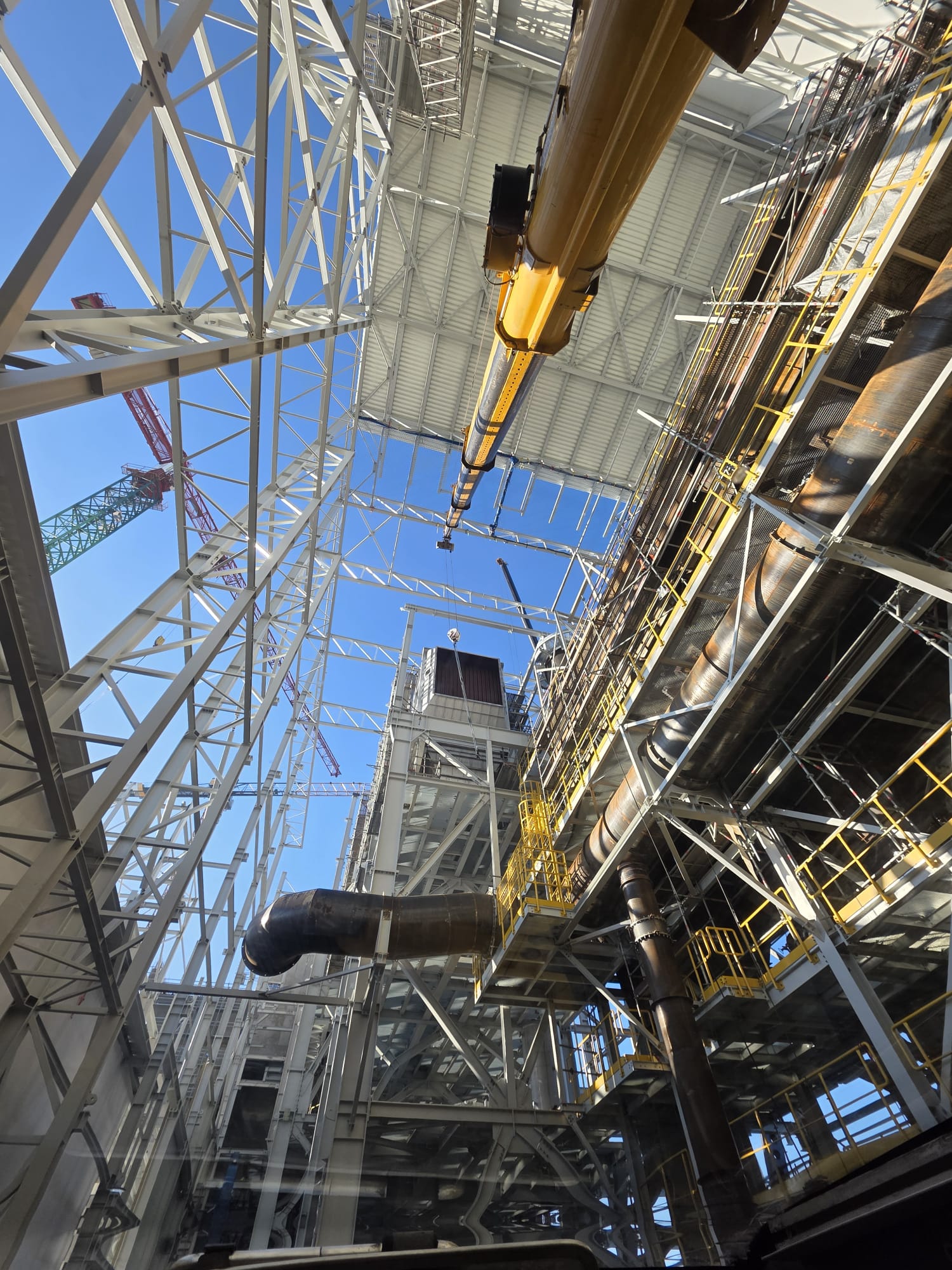 Profesjonalny załadunek maszyn przemysłowych przy użyciu dźwigów i podnośników, z zachowaniem bezpieczeństwa i precyzji.